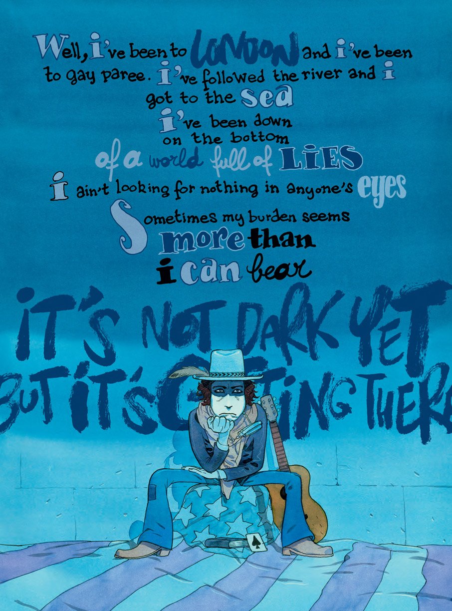 The below images are from a book (Bob Dylan Revisited) that was the result of a collaboration of 13 artists, and their attempts to paint visual images of Bob Dylan's songs. The first drawing, concerning "Nor Dark Yet", is incredibly evocative and carries with it a certain sense of sadness. I think most of the images speak for themselves: